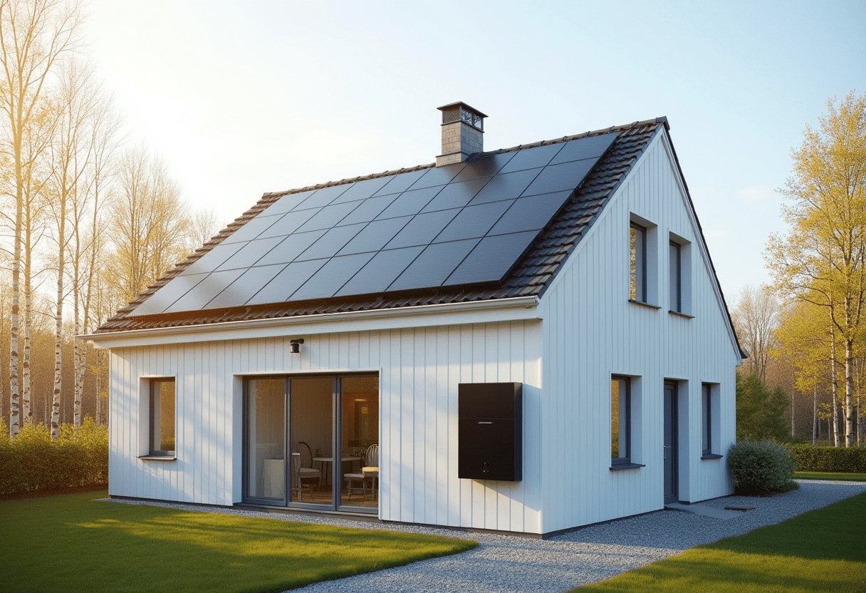 Solcellssystem som fungerar utan anslutning till det allmänna elnätet.